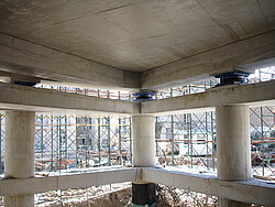 MAURER isolators are specially modified structural bearings that enable effective decoupling of a structure from the foundations. This results in the vibration period of the structure being increase to the the range of two and five seconds. At the same time, increased damping through energy dissipation in the structural elements causes an additional decrease in acceleration and ultimately of forces in the structure. Lower acceleration by a factor of two to five means that severe structural damage through seismic impact can be averted.