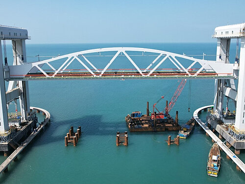 Die gut 2,06km lange Pamban-Brücke im Süden Indiens verbindet die Insel Pamban (Rameshwaram Island) mit dem Festland. Genau genommen handelt es sich mittlerweile um drei Brücken: Die ursprüngliche, 100 Jahre alte Eisenbahnbrücke (seit 2022 gesperrt), die 1988 eröffnete Straßenbrücke und die „Neue Pamban-Brücke“, eine zweigleisige Eisenbahnbrücke. Sie soll die Verkehrsanbindung verbessern und die lokale Wirtschaft fördern, da Rameshwaram auf Pamban eine vielbesuchte Pilgerstadt ist.