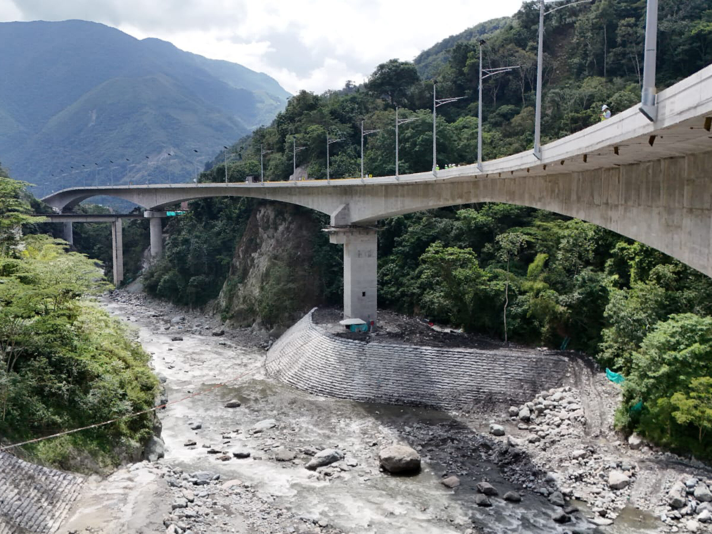 The key point combines steep topography, a crossing over a wild river, constantly disrupted terrain and one of the highest seismic hazard levels in the country, with peak accelerations of more than 1 g. One of the reasons for this is the active Guayuriba Fault, which runs 131 km along the eastern edge of the Andes and is just 18 km away from the bridge.